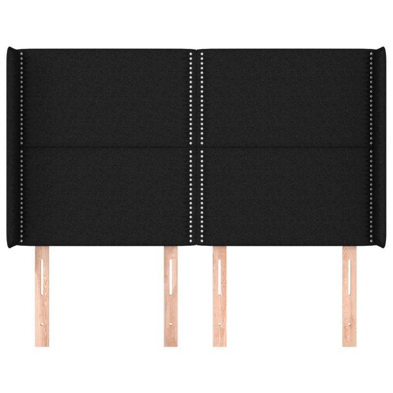Горна табла за легло с уши, черна, 147x16x118/128 см, плат