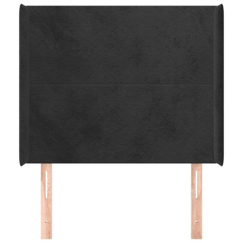 Горна табла за легло с уши, черна, 93x16x118/128 см, кадифе