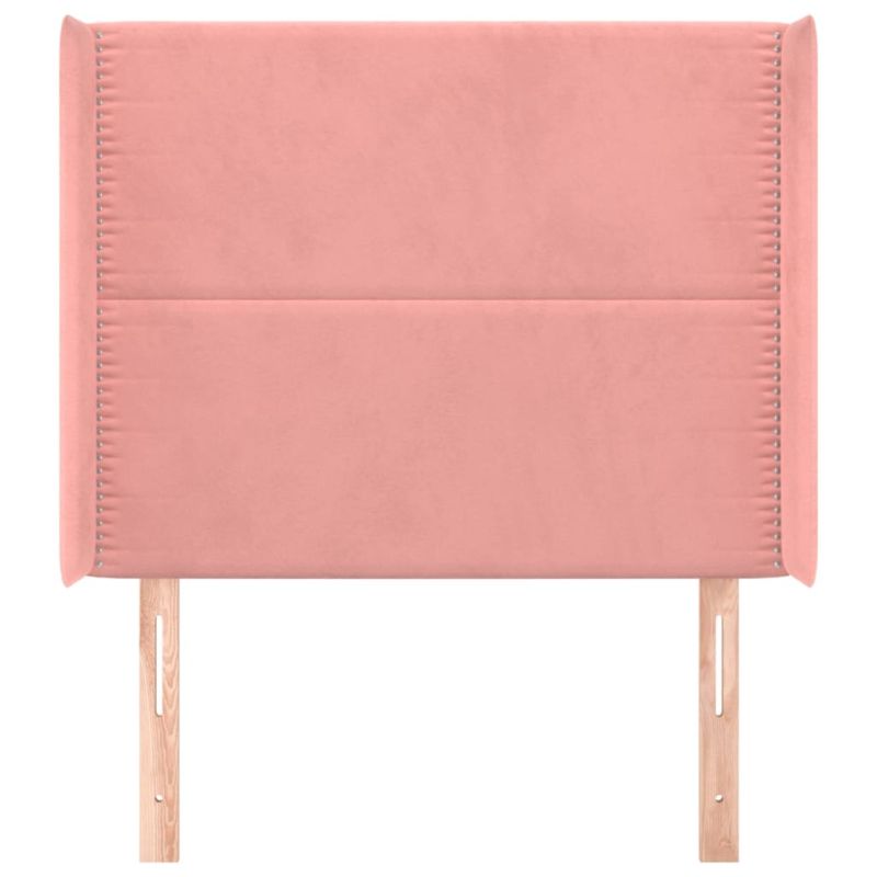 Горна табла за легло с уши, розова, 83x16x118/128 см, кадифе