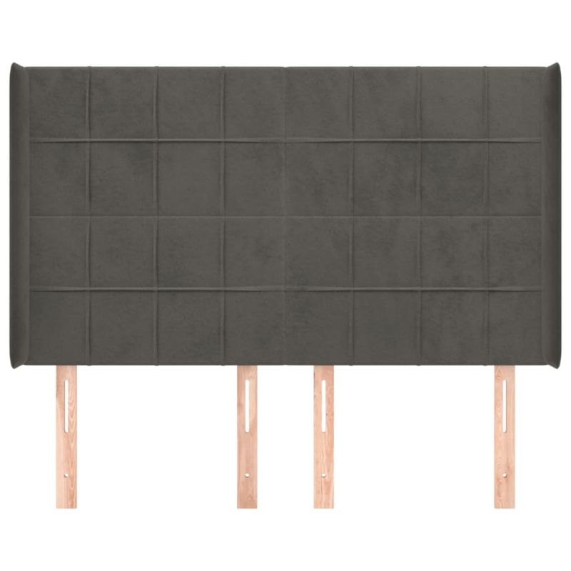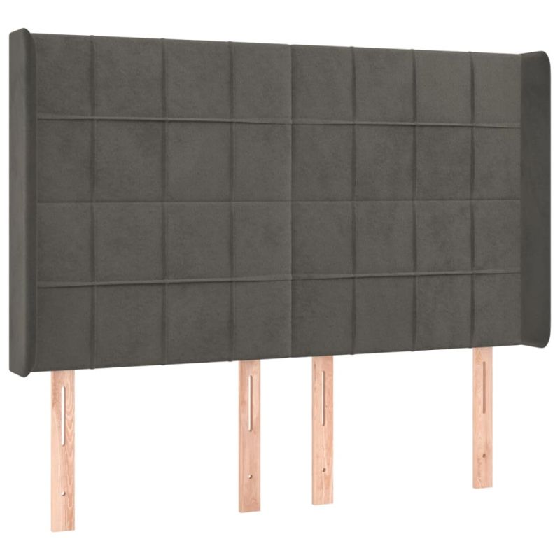 Горна табла за легло с уши, тъмносива, 147x16x118/128см, кадифе