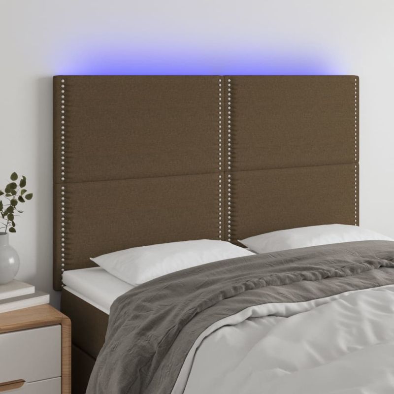 LED горна табла за легло, тъмнокафява,144x5x118/128 см, плат