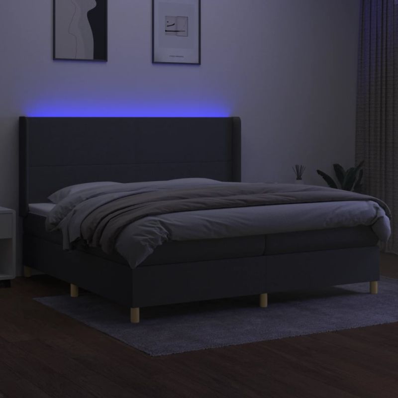Боксспринг легло с матрак и LED, тъмносиво, 200x200 см, плат