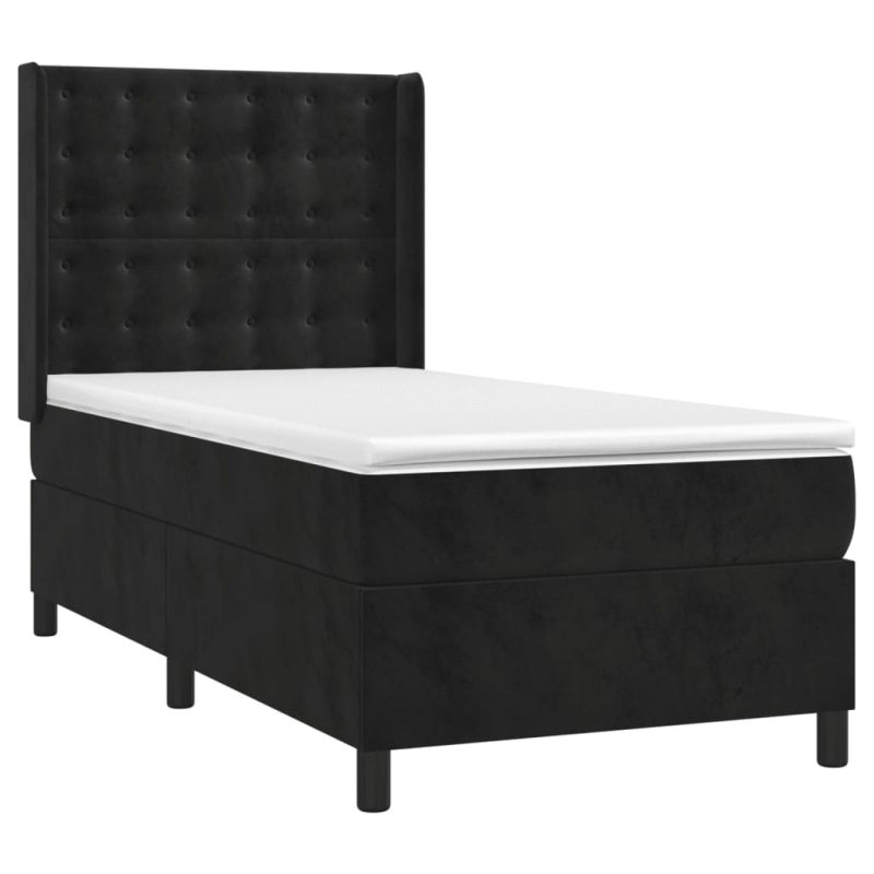 Боксспринг легло с матрак, черно, 90x200 см, кадифе