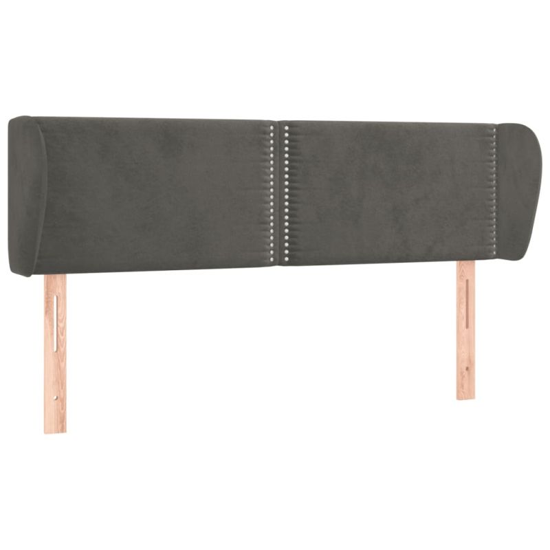 Горна табла за легло с уши, тъмносива, 147x23x78/88 см, кадифе