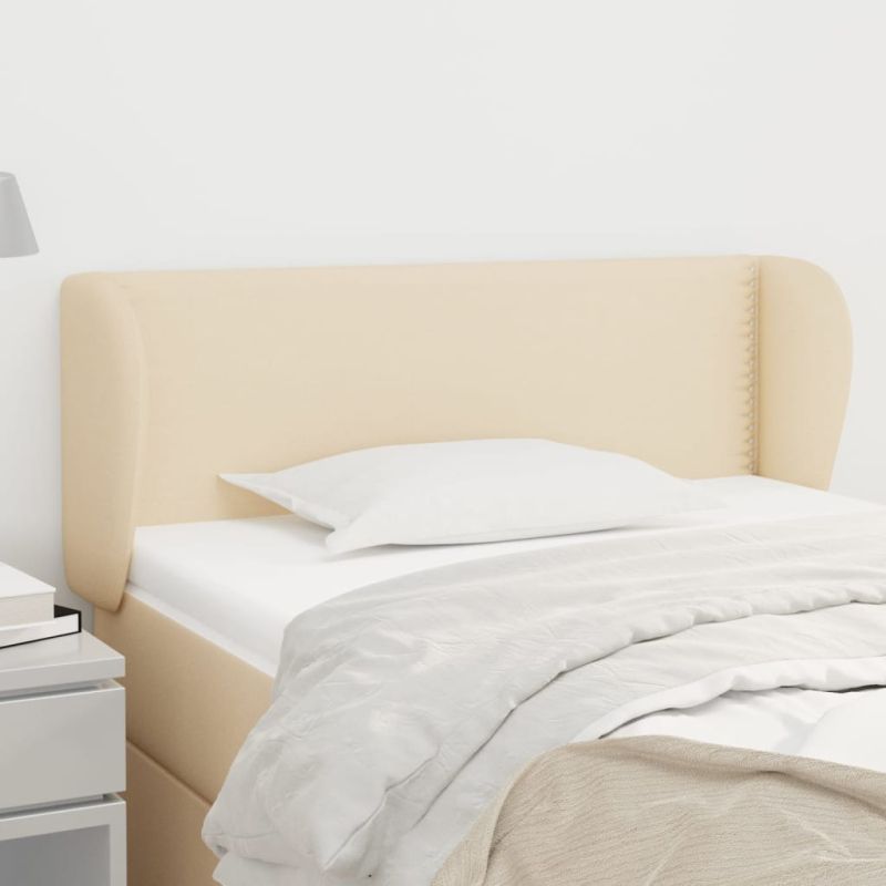 Горна табла за легло с уши, кремава, 103x23x78/88 см, плат