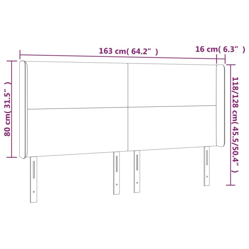 Горна табла за легло с уши, светлосива, 163x16x118/128 см, плат