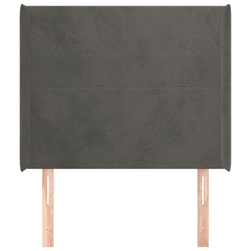 Горна табла за легло с уши, тъмносива, 83x16x118/128 см, кадифе