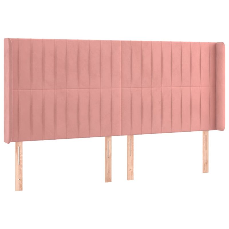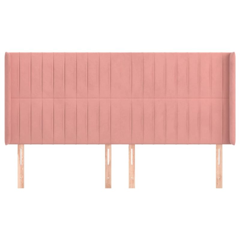 Горна табла за легло с уши, розова, 163x16x118/128 см, кадифе