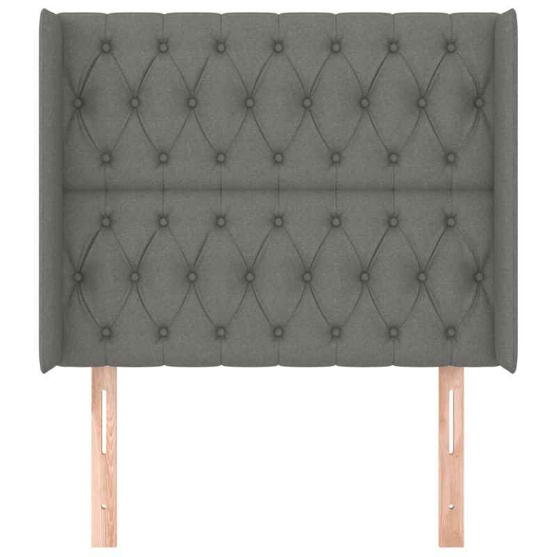 Горна табла за легло с уши, тъмносива, 103x16x118/128 см, плат