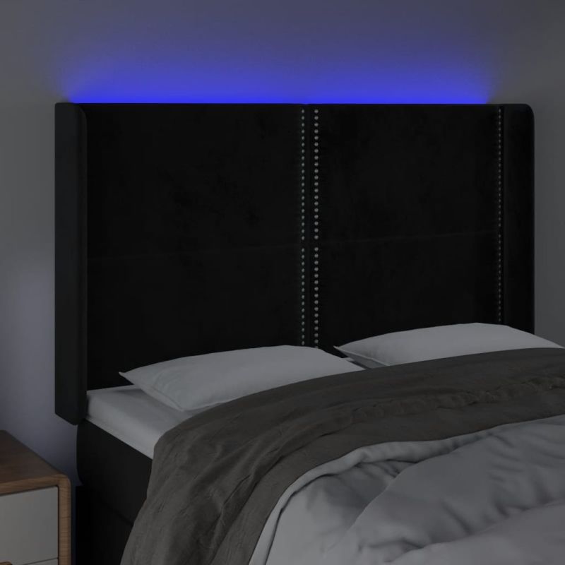 LED горна табла за легло, черна, 147x16x118/128 см, кадифе