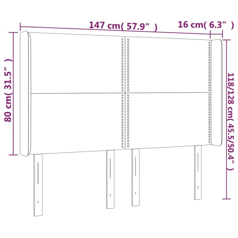 LED горна табла за легло, кремава, 147x16x118/128 см, плат