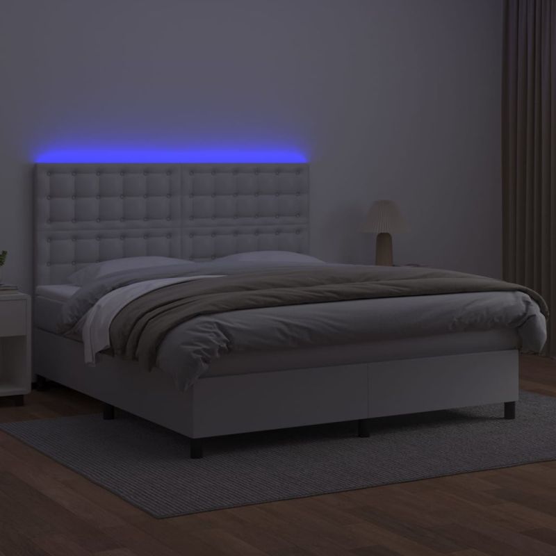 Боксспринг легло с матрак и LED бяло 180x200 см изкуствена кожа