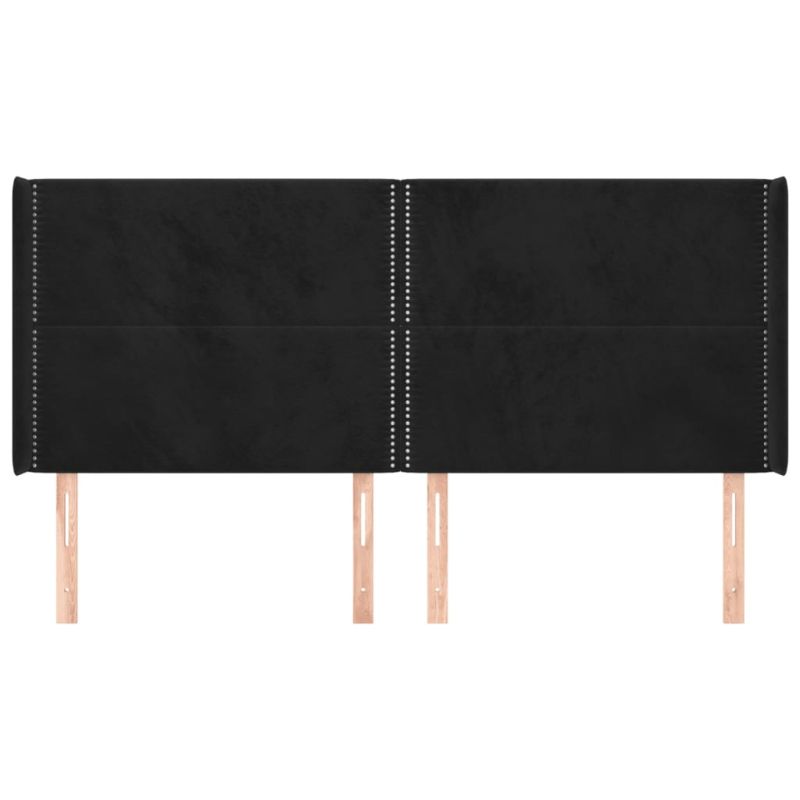 Горна табла за легло с уши, черна, 163x16x118/128 см, кадифе