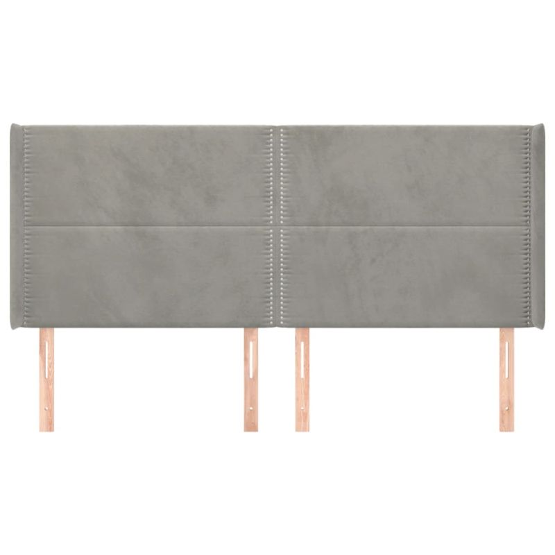 Горна табла за легло с уши, светлосива,163x16x118/128см, кадифе