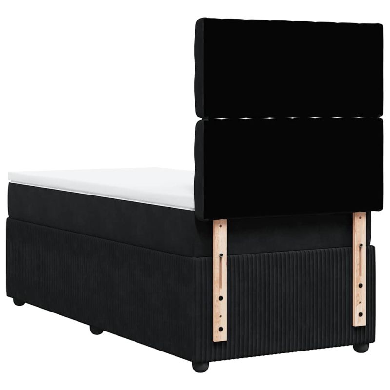 Боксспринг легло с матрак, черно, 90x200 см, кадифе