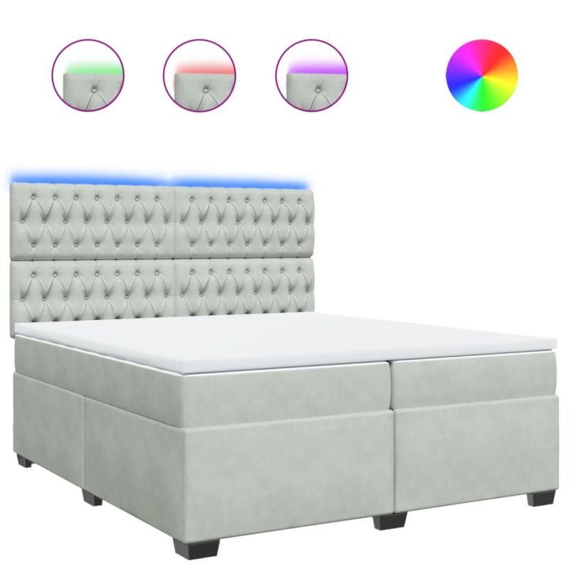 Боксспринг легло с матрак, светлосиво, 200x200 см, кадифе