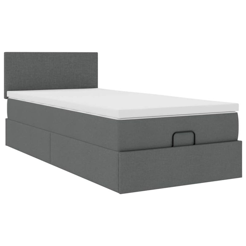 Османска легло с матрак и LED, тъмносиво, 100x200 см, плат