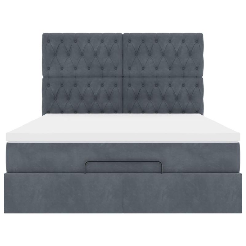 Османска легло с матраци и LED, тъмносиво, 140x190 см, кадифе