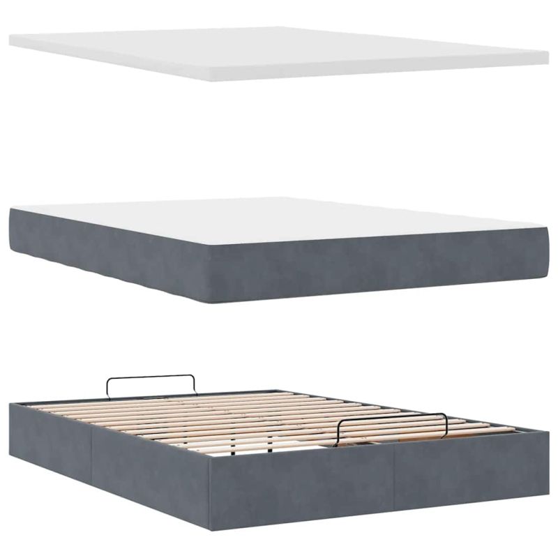Използвайте това легло с матраци, за да се насладите на спокоен нощен сън! То ви предлага както решение за съхранение, така и комфортен сън. Мек и удобен материал: Кадифената материя се отличава с мека и гладка повърхност, която създава приятно усещане върху кожата, като ви носи топлина и максимален комфорт.Матрак с джоб пружини: Този матрак с джоб пружини има индивидуални пружини с джобчета, които работят независимо, за да осигурят персонализирана опора, като реагират само на натиска във всяка област. Този дизайн предотвратява "свличането" към средата на матрака и намалява прехвърлянето на движение в сравнение с традиционните матраци с отворени намотки. Всяка покет пружина поддържа тялото индивидуално.Достатъчно място за съхранение под леглото: Благодарение на хидравличния повдигащ механизъм рамката на леглото предлага обширно пространство за съхранение под леглото, което увеличава пространството, без да заема допълнителна площ. Само с едно издърпване на дръжката основата на ламелите се повдига плавно, което ви позволява да прибирате вещите си бързо и без усилие.Удобен горен матрак: Този топ матрак подобрява опората и комфорта със своята мека, дишаща повърхност, като същевременно удължава живота на вашия матрак. Подвижният му калъф позволява лесно изпиране, което прави поддръжката лесна.LED светлини за приятна атмосфера: Това легло разполага с LED светлини, които могат лесно да се регулират, за да се създаде персонализирано светлинно шоу. Можете да персонализирате режимите, цветовете и яркостта, за да подобрите атмосферата на вашето вътрешно пространство. Добре е да се знае:Продуктът има USB конектор, който изисква сертифициран 5V USB захранващ източник (не е включен).От хигиенни съображения матракът не може да бъде върнат, ако опаковката е отстранена или отворена.Само частта със символ на ножица може да бъде изрязана и само частта с USB ще продължи да функционира както преди. Този продукт се захранва с DC 5V, но сертифицираният 5V USB източник на захранване не е включен в комплекта. По-високото напрежение може да доведе до прегряване на устройството и да доведе до повреда на устройството и потенциален риск от прегряване и пожар.