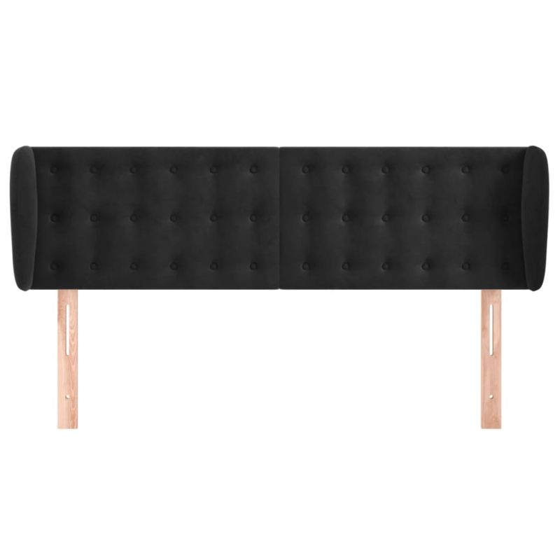 Горна табла за легло с уши, черна, 147x23x78/88 см, кадифе