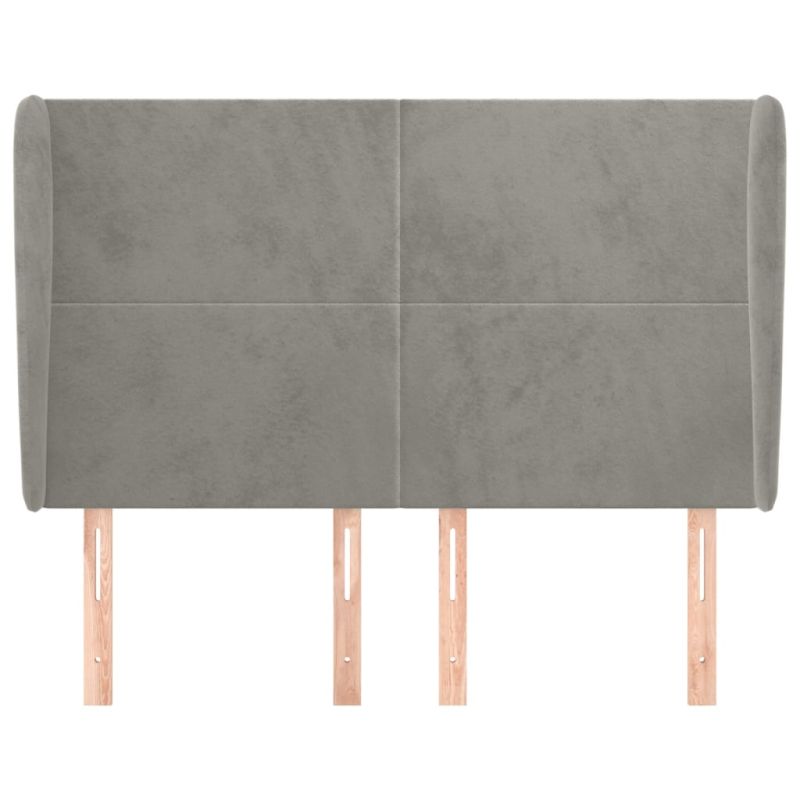Горна табла за легло с уши,светлосива, 147x23x118/128 см кадифе