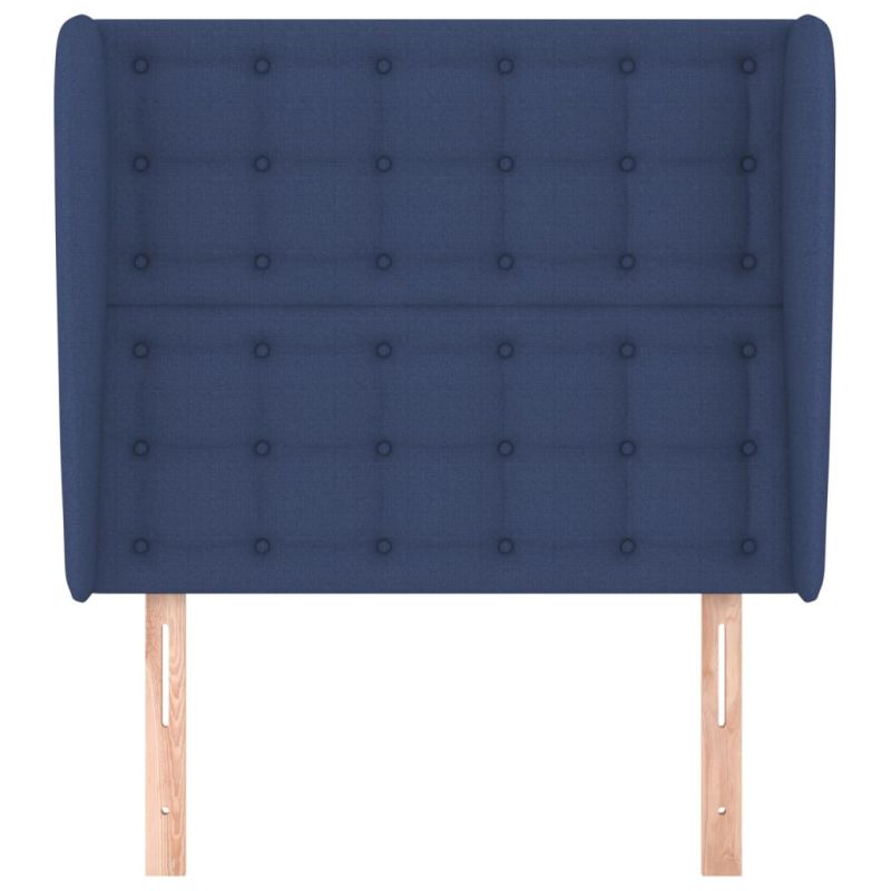 Горна табла за легло с уши, синя, 103x23x118/128 см, плат
