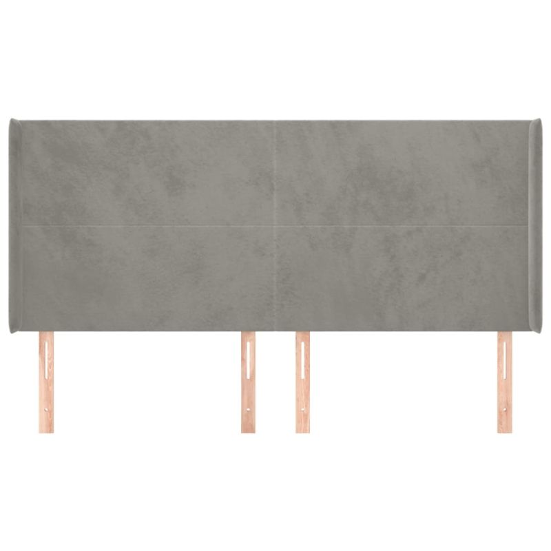 Горна табла за легло с уши, светлосива,163x16x118/128см, кадифе