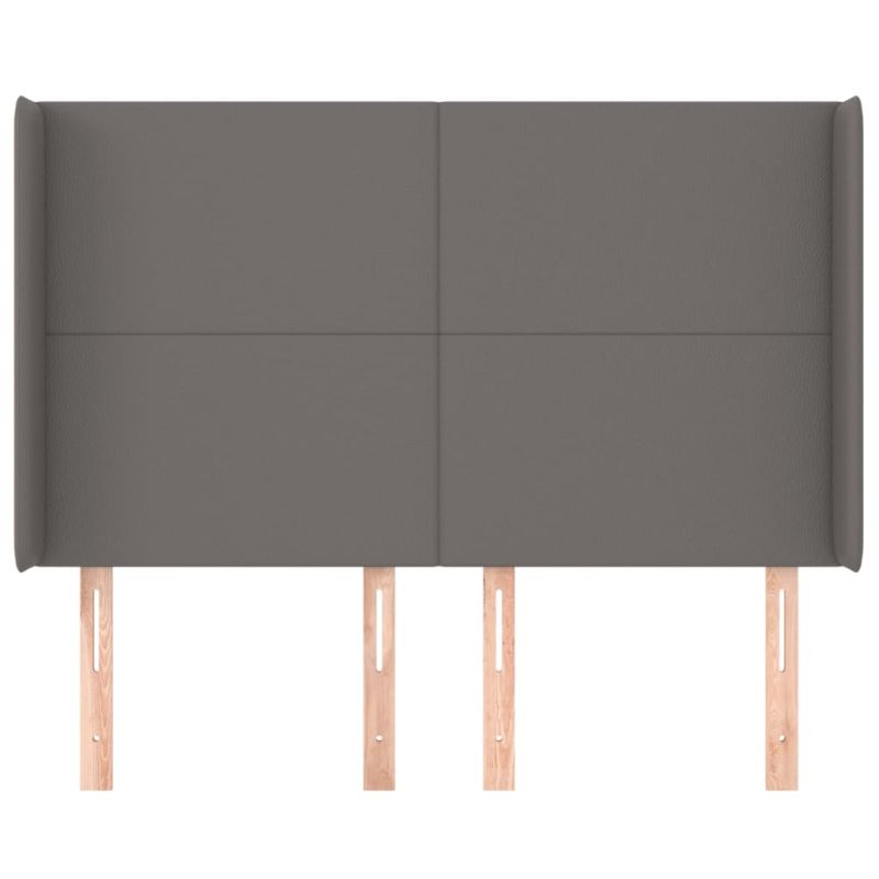 Горна табла с уши, сива, 147x16x118/128 см, изкуствена кожа