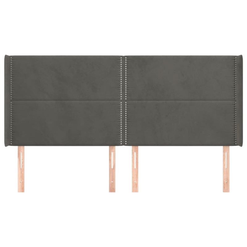 Горна табла за легло с уши, тъмносива, 183x16x118/128см, кадифе
