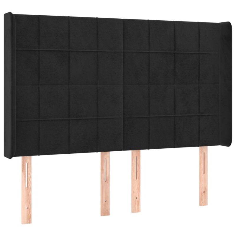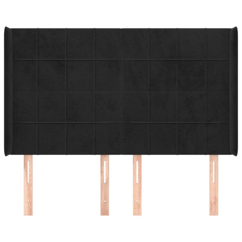 Горна табла за легло с уши, черна, 147x16x118/128 см, кадифе
