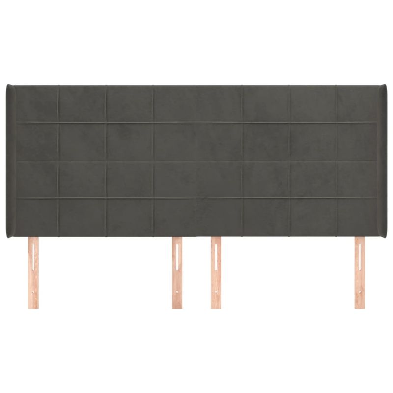 Горна табла за легло с уши, тъмносива, 203x16x118/128см, кадифе