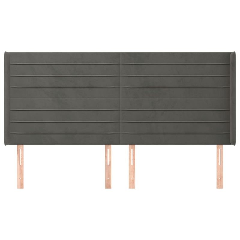 Горна табла за легло с уши, тъмносива, 163x16x118/128см, кадифе