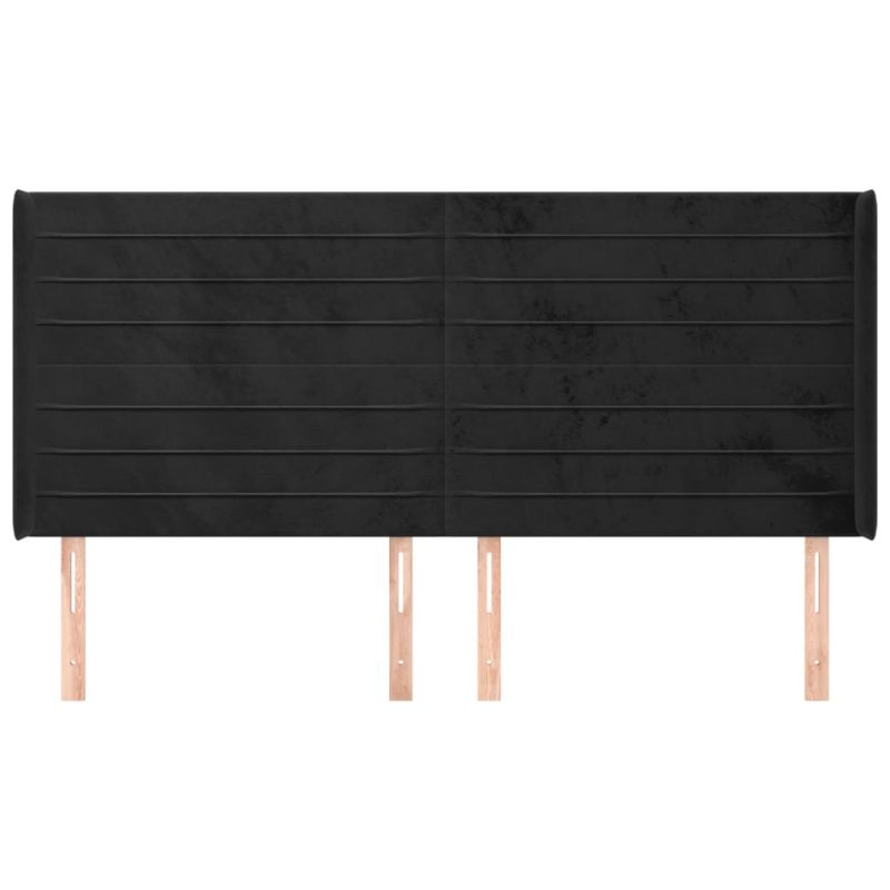 Горна табла за легло с уши, черна, 183x16x118/128 см, кадифе