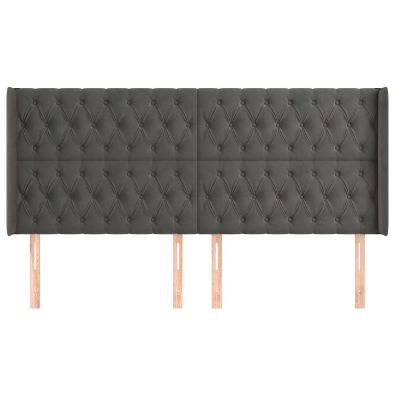 Горна табла за легло с уши, тъмносива, 203x16x118/128см, кадифе