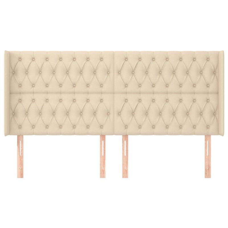 Горна табла за легло с уши, кремава, 203x16x118/128 см, плат
