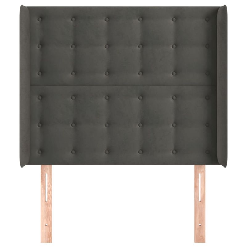 Горна табла за легло с уши, тъмносива, 93x16x118/128 см, кадифе