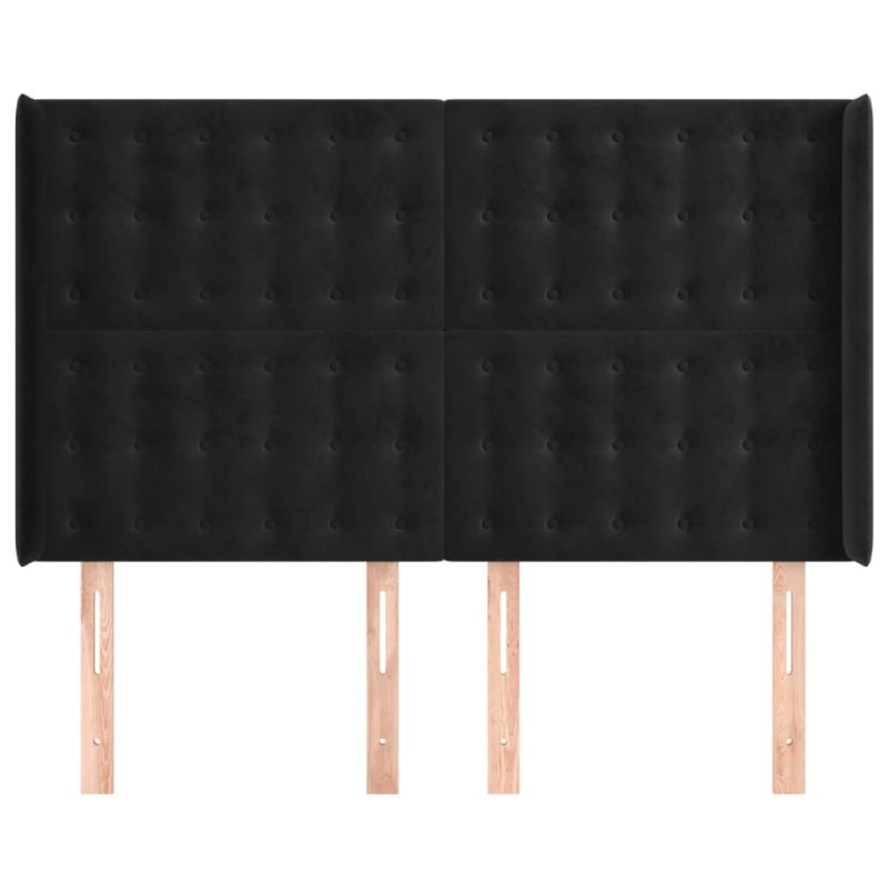 Горна табла за легло с уши, черна, 147x16x118/128 см, кадифе