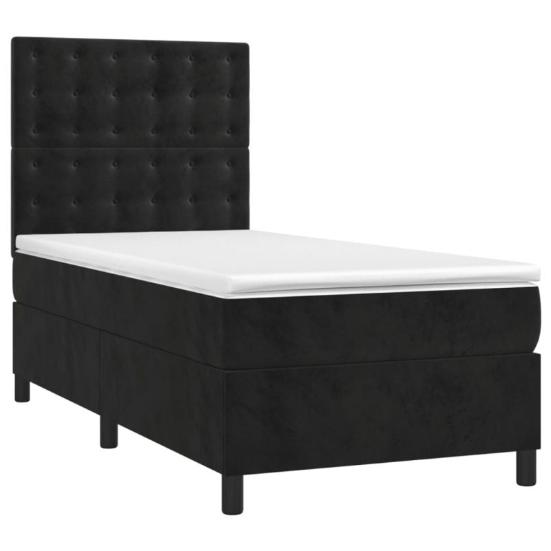 Боксспринг легло с матрак и LED, черно, 90x200 см, кадифе