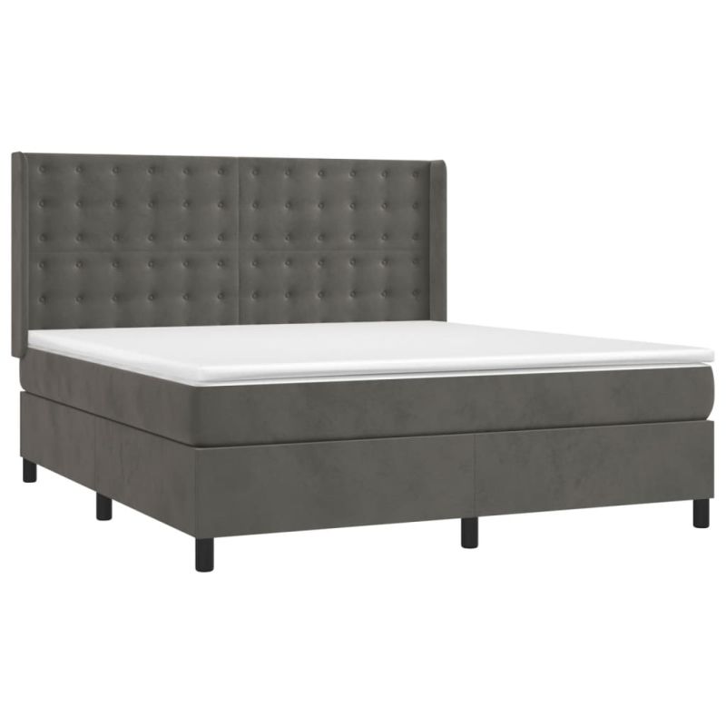 Боксспринг легло с матрак и LED, тъмносиво, 160x200 см, кадифе