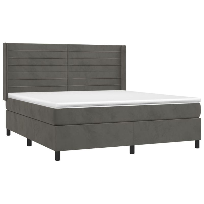 Боксспринг легло с матрак и LED, тъмносиво, 160x200 см, кадифе