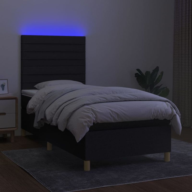 Боксспринг легло с матрак и LED, черно, 80x200 см, плат