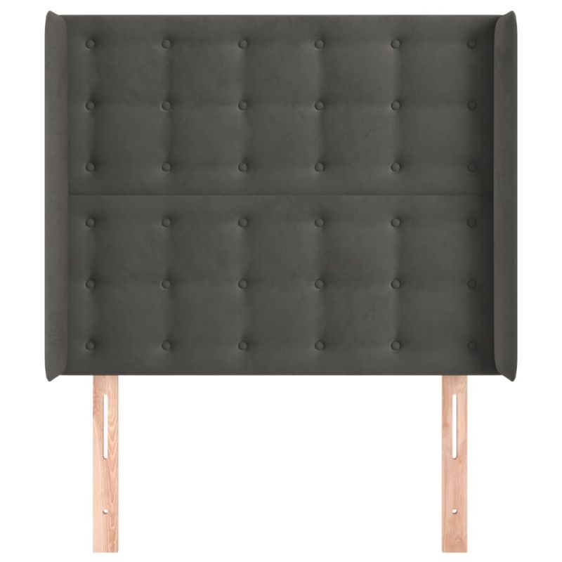 Горна табла за легло с уши, тъмносива, 83x16x118/128 см, кадифе