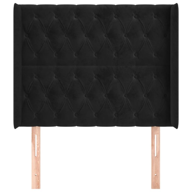 Горна табла за легло с уши, черна, 103x16x118/128 см, кадифе