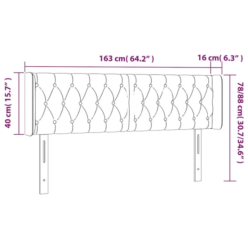 LED горна табла за легло, тъмносиня, 163x16x78/88 см, кадифе