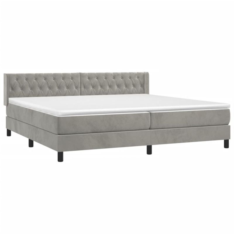 Боксспринг легло с матрак, светлосиво, 200x200 см, кадифе