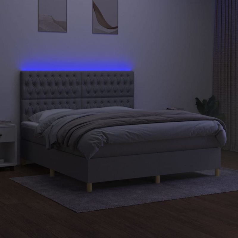 - Купете Боксспринг легло с матрак и LED, светлосиво, 160x200 см, плат или друг продукт от нашата промоционална секция за да получите 3% отстъпка.