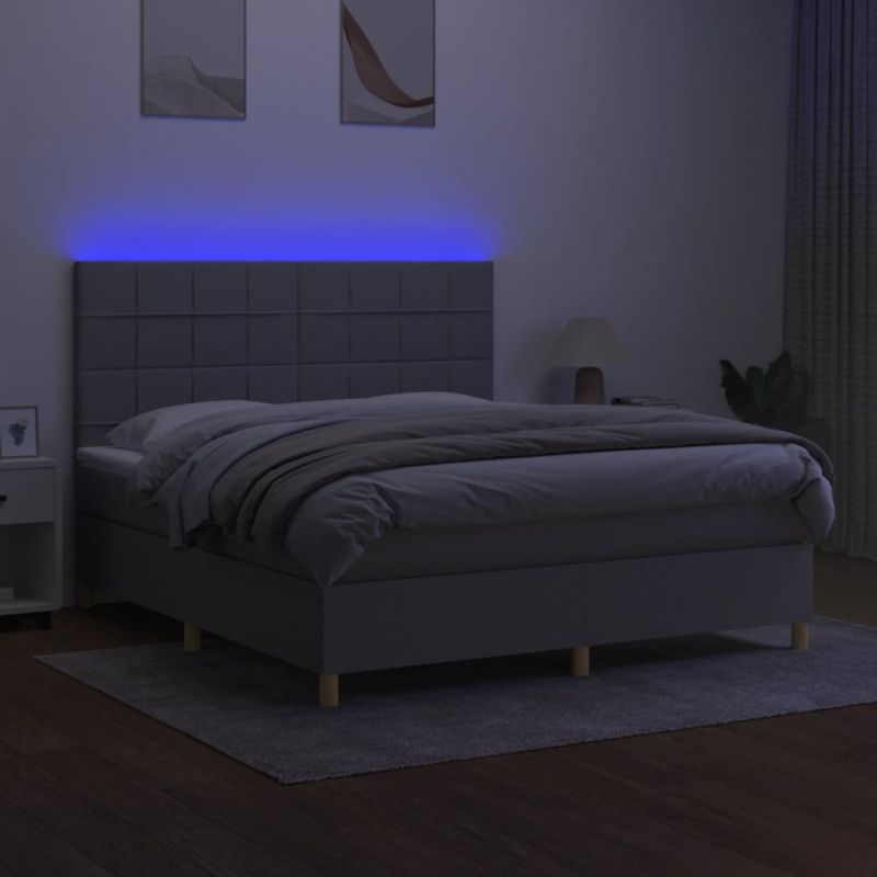 - Купете Боксспринг легло с матрак и LED, светлосиво, 160x200 см, плат или друг продукт от нашата промоционална секция за да получите 3% отстъпка.