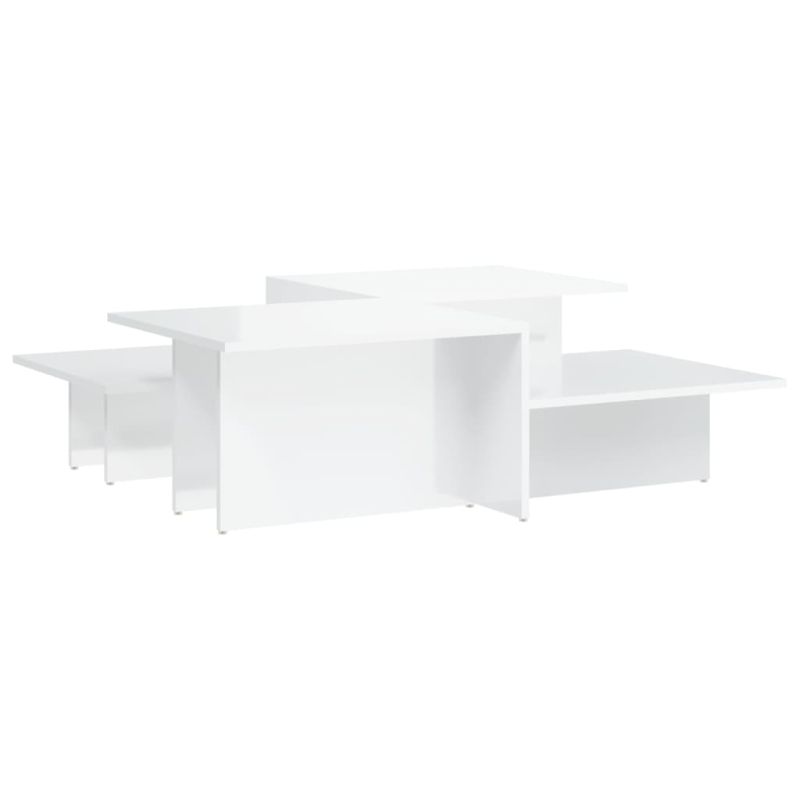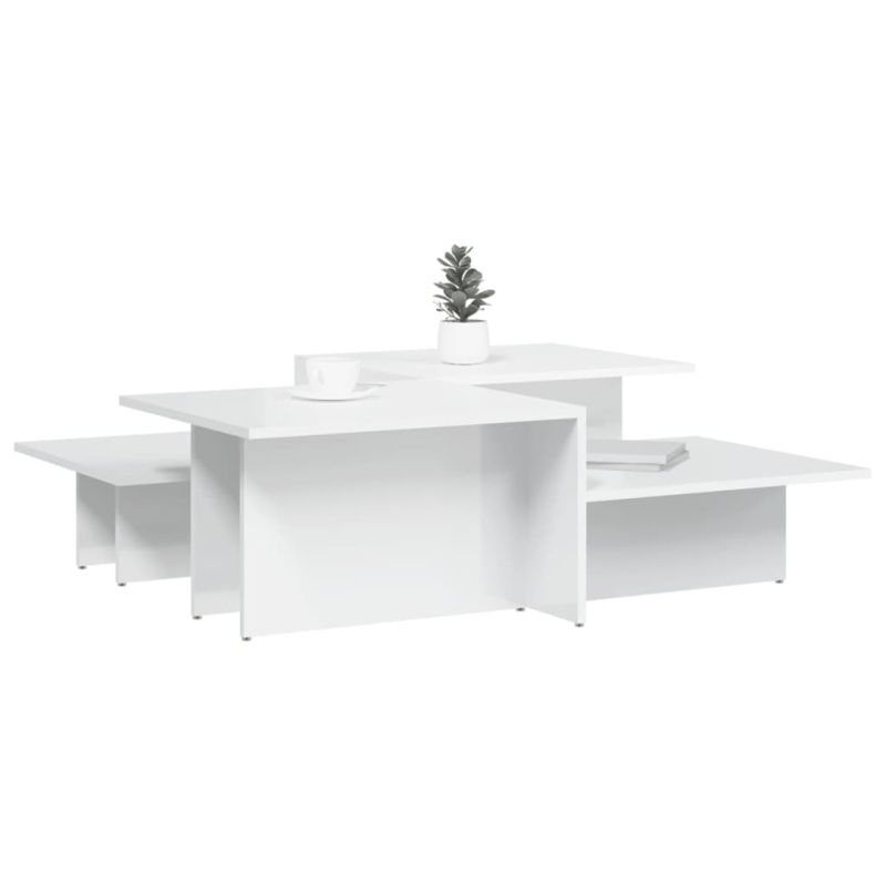 Маси за кафе, 2 бр, бял гланц, инженерно дърво