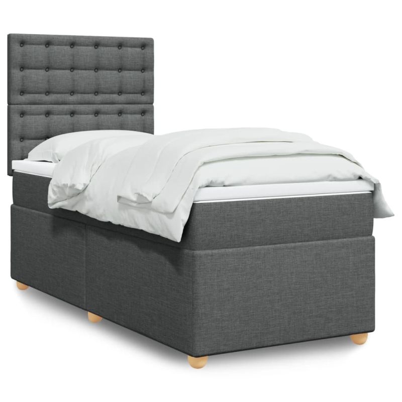 Боксспринг легло с матрак, тъмносиво, 100x200 см, плат