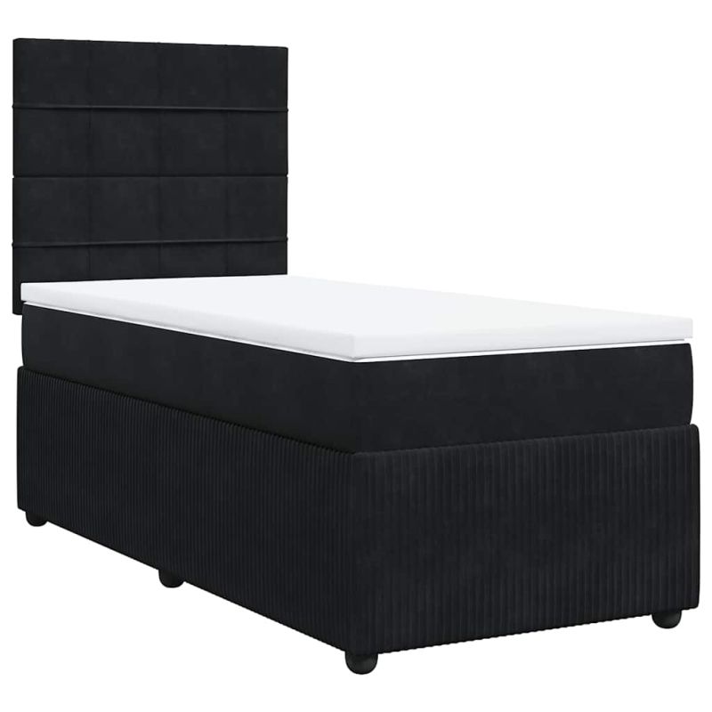 Боксспринг легло с матрак, черна, 90x190 см, кадифе